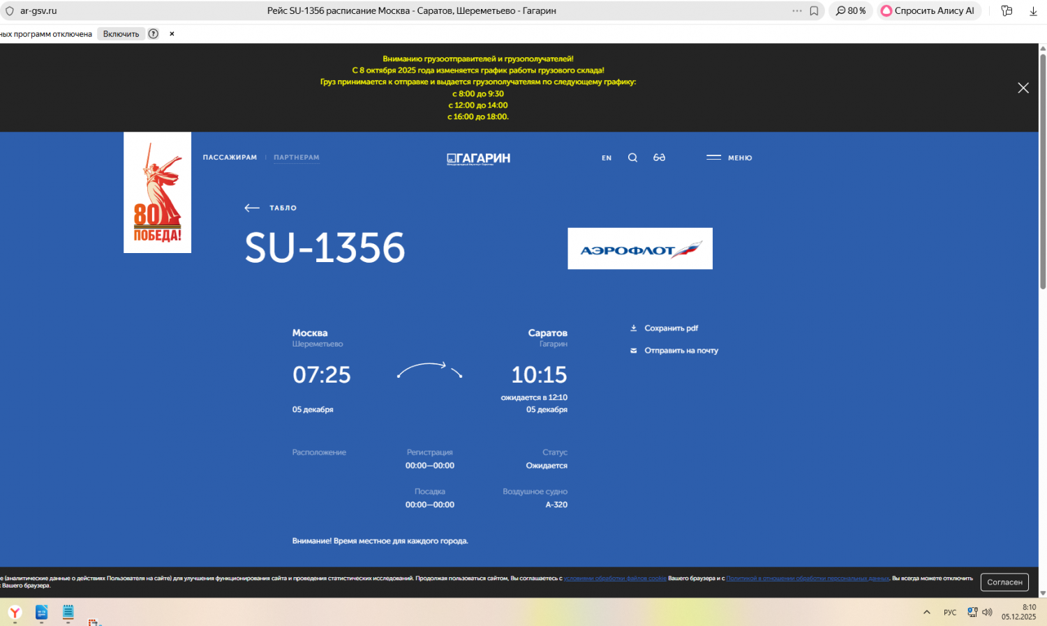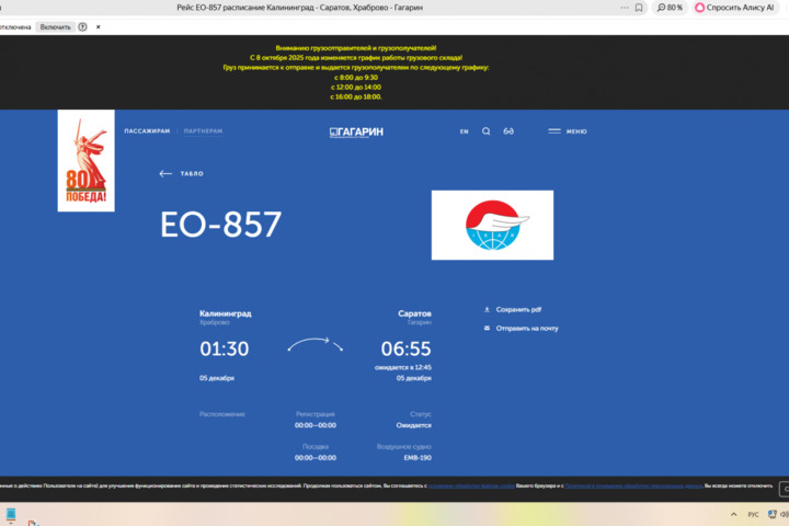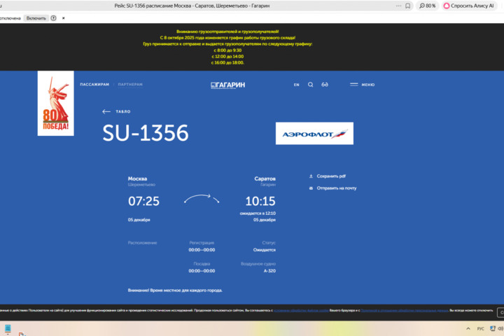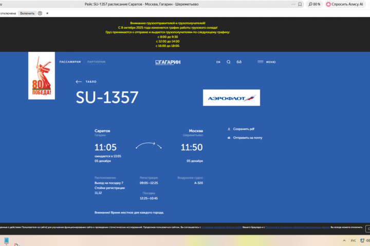 Отметим, что сегодня в Саратовской области объявляли угрозу атаки БПЛА. Некоторым жителям уже пришла sms от РСЧС об отбое угрозы. Однако «Гагарин» всё ещё закрыт.