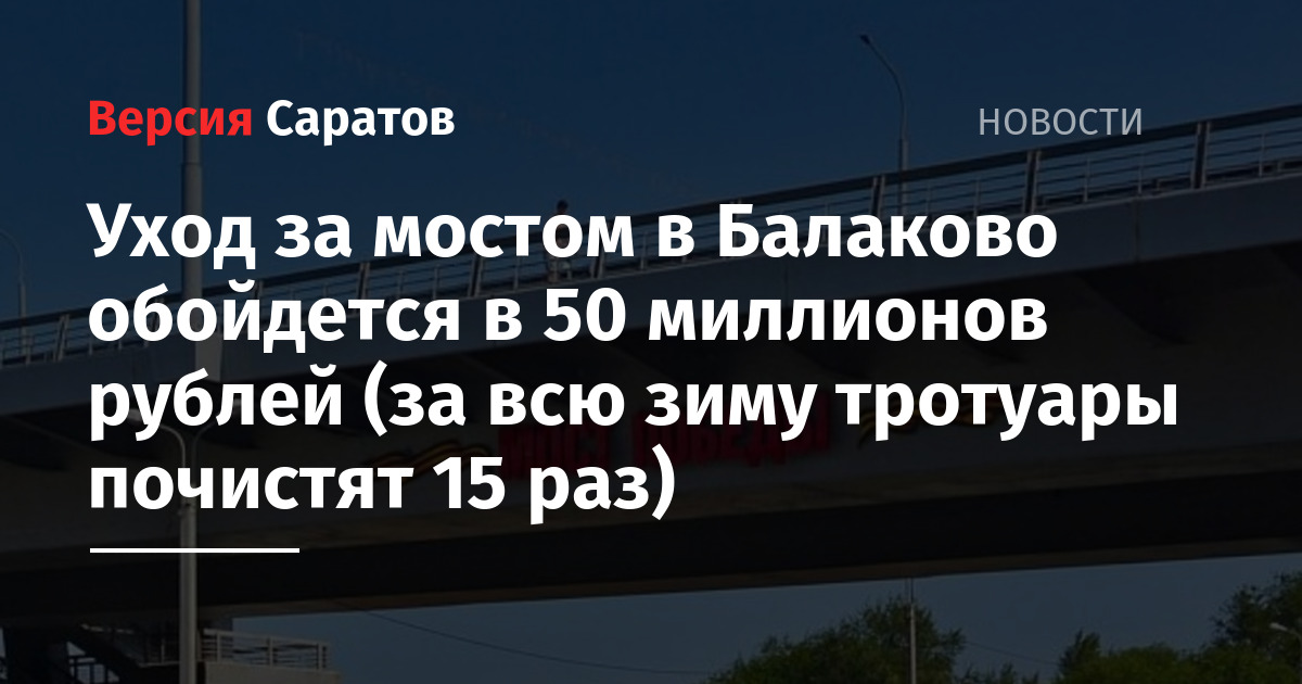 Уход за мостом в Балаково обойдется в 50 миллионов рублей (за всю зиму тротуары почистят 15 раз)