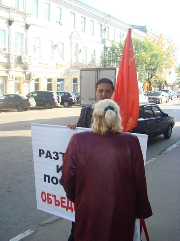 В то же время на улице Чапаева, между улицами Московская и Советская, сегодня проводили одиночные пикеты несколько граждан. У двоих из них были флаги КПРФ. На плакатах у граждан были написаны различные призывы. Например: «Нас разъединили и бьют! Поодиночке! Объединяйтесь!» Как сообщили сами участники пикетов, они «возмущены тем, что власти запрещают некоторым партиям проводить акции, не согласовывая им мероприятия».