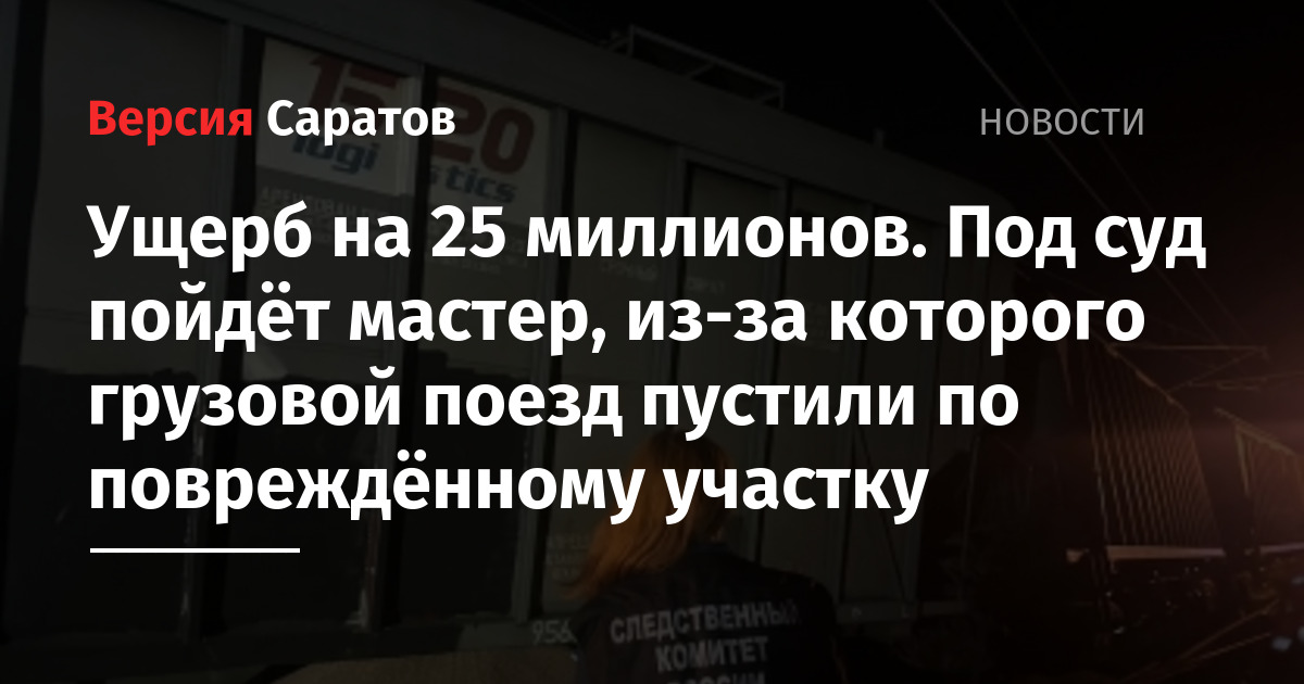 В Саратовской области будут судить 33-летнего дорожного мастера. Как рассказали в Западном межрегиональном следственном управлении на транспорте СК РФ, его обвиняют в нарушении правил безопасности движения и эксплуатации железнодорожного транспорта (ч. 1 ст. 263 УК РФ).