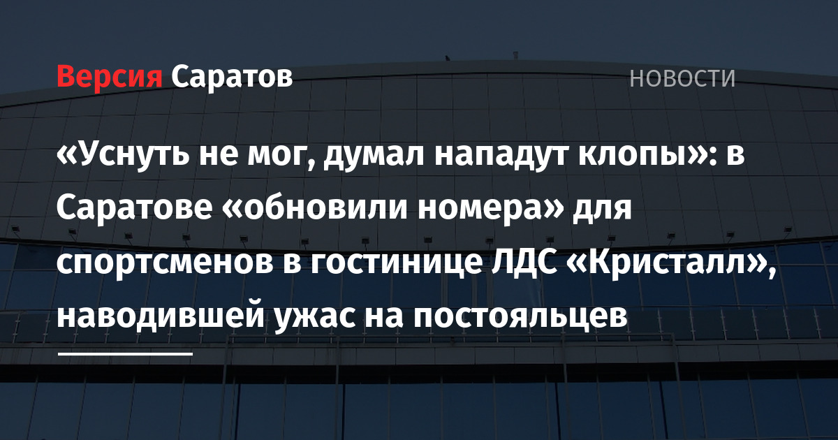 «Уснуть не мог, думал нападут клопы»: в Саратове «обновили номера» для спортсменов в гостинице ЛДС «Кристалл», наводившей ужас на постояльцев