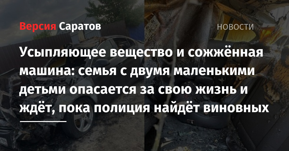 В Саратове семье с двумя маленькими детьми сожгли машину. Об этом рассказала обратившаяся в ИА «Версия-Саратов» Алёна Съестнова.