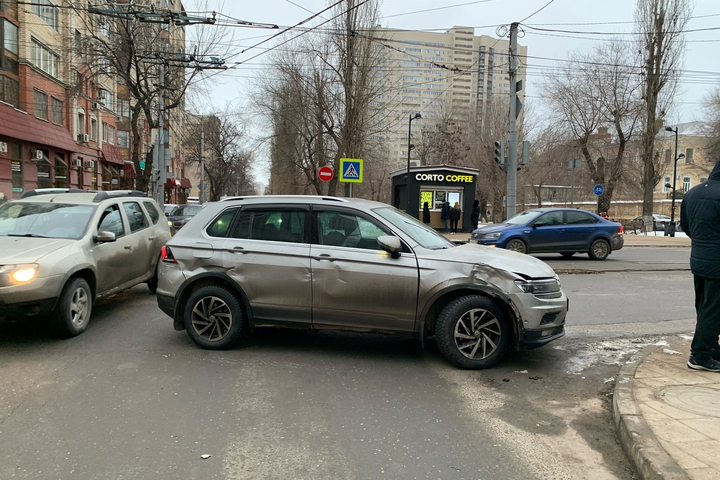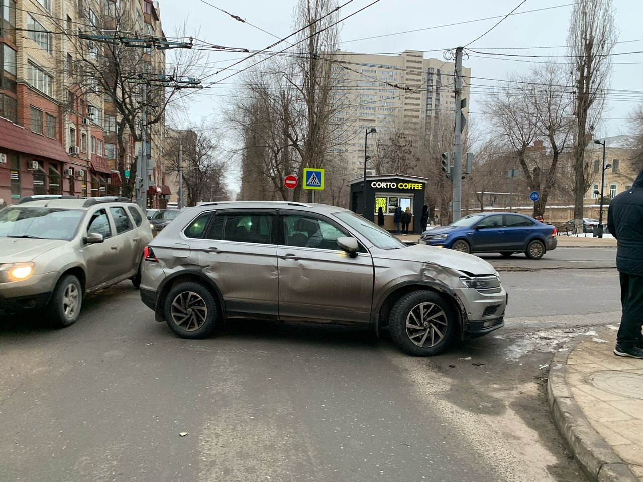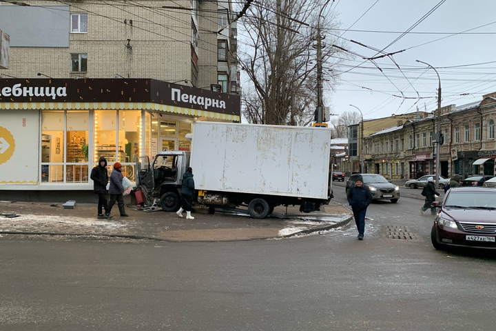 Сегодня утром, 10 февраля, в центре Саратова столкнулись Volkswagen и фургон. По словам нашего корреспондента с места происшествия, грузовая машина врезалась в здание, в котором находится пекарня.