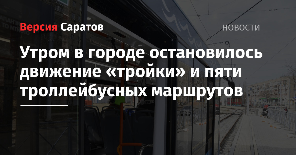 Сегодня, 20 апреля, утром в Саратове оказалось прервано движение по пяти троллейбусным и трамвайному маршруту. Об этом предупредили в МУПП «Саратовгорэлектротранс» в соцсетях.