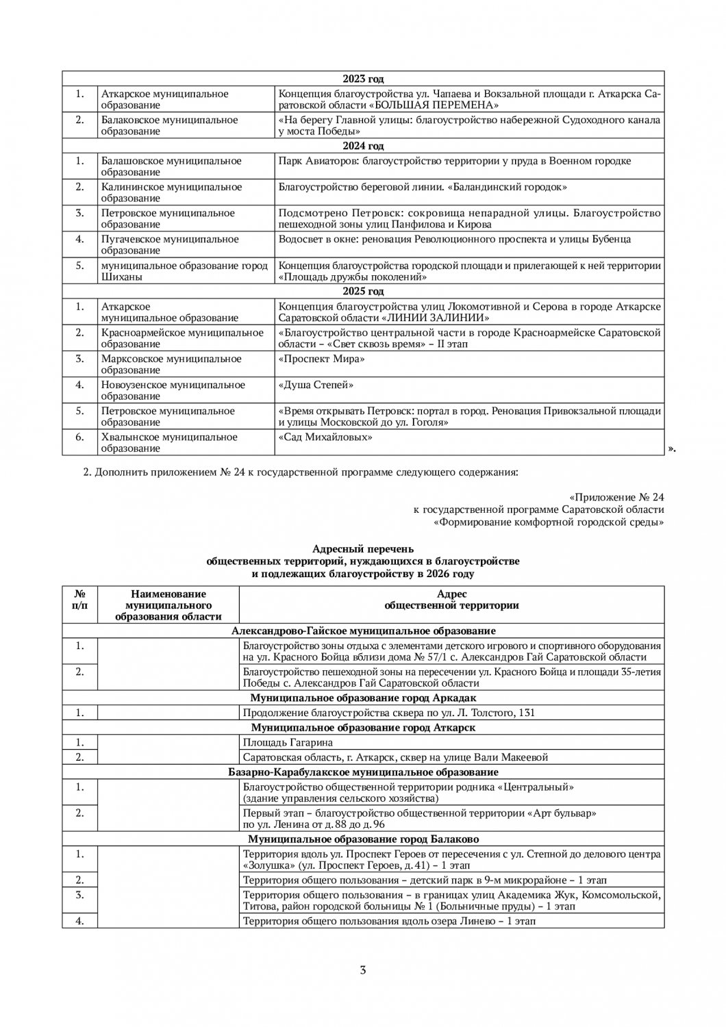 В Саратовской области утвержден «адресный перечень общественных территорий, нуждающихся в благоустройстве и подлежащих благоустройству в 2026 году». Губернатор региона Роман Бусаргин внес соответствующие поправки в областную программу «Формирование комфортной городской среды».