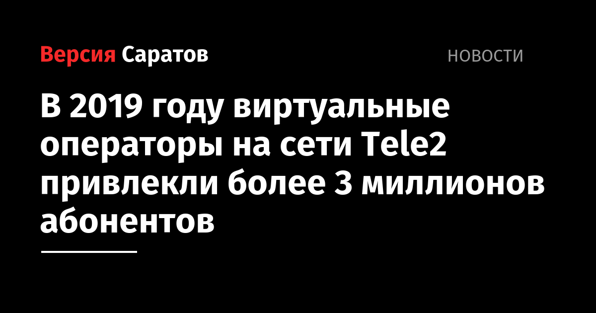 Оператор мобильной связи Tele2 подводит итоги развития MVNO-направления в 2019 году. Общее число клиентов, которых обслуживают виртуальные операторы Tele2, составило 3,75 млн. Банковские операторы показали особенно высокие темпы роста — их абонентская база увеличилась в 6,5 раза.