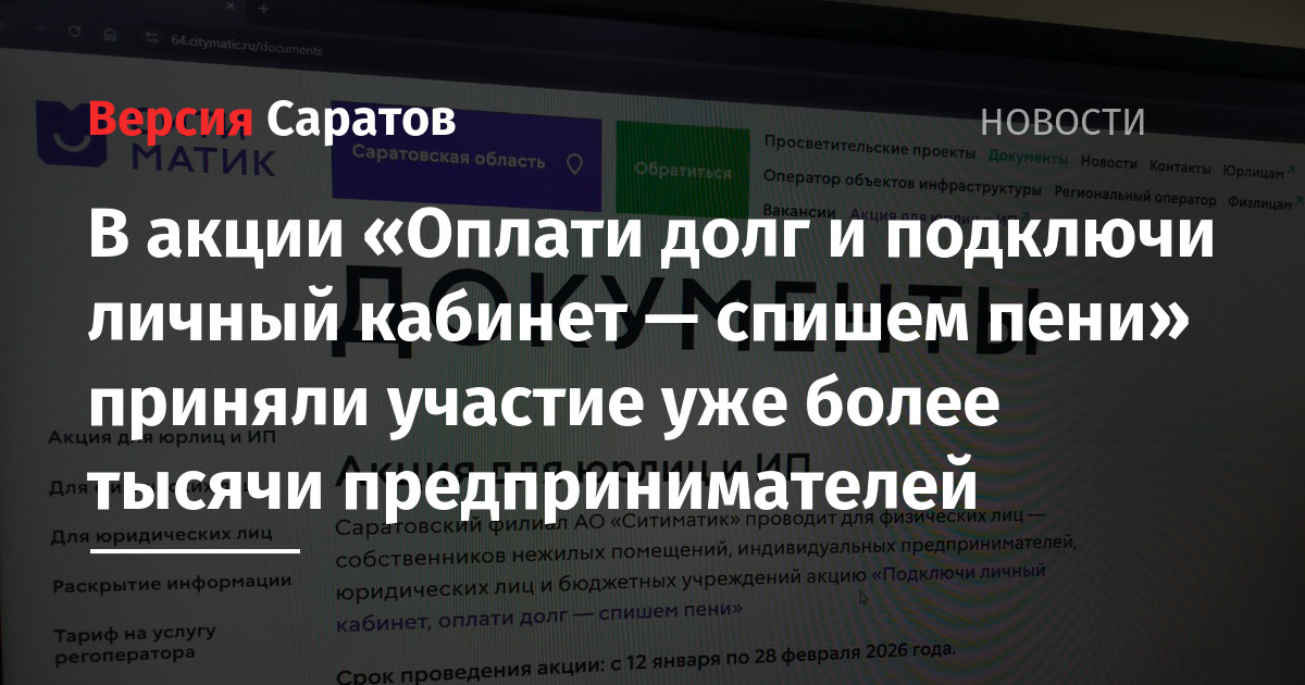 Акция «Оплати долг и подключи личный кабинет — спишем пени» продлится до 28 февраля 2026 года. Дополнительную информацию можно получить в контакт-центре Саратовского филиала компании «Ситиматик» по телефону: 8 (8452) 25-64-90.