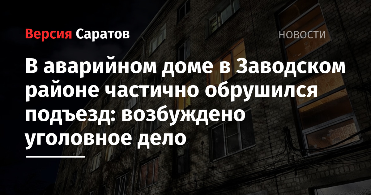 В Заводском районе Саратова частично обрушился подъезд дома. Об этом сообщили в региональном СУ СК.