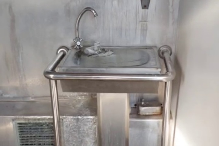 «Вода и лед под ногами: не войдешь. Опасно ступить! Под раковиной все в таком состоянии, слив не работает, все время течет. Аварийная ситуация. Дверь не закрывается», — рассказал горожанин, выложивший в мессенджере короткое видео. На представленных кадрах видно, что туалет действительно залит водой и покрыт льдом.