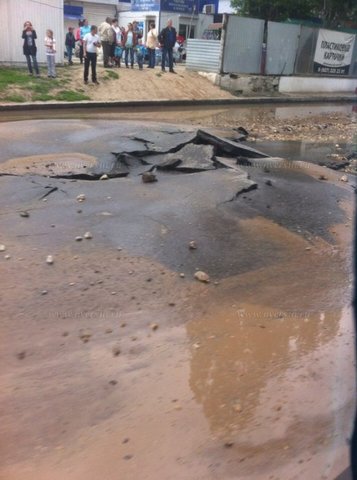 Сегодня в Балаково на улице Степной образовался провал на проезжей части. Асфальт разломан, а в образовавшемся углублении видна вода. Очевидцы сообщают, что все произошло из-за прорыва трубы, находящейся под дорожным полотном. Вероятно, труба лопнула во время опрессовки, начавшейся в Балаково вчера.