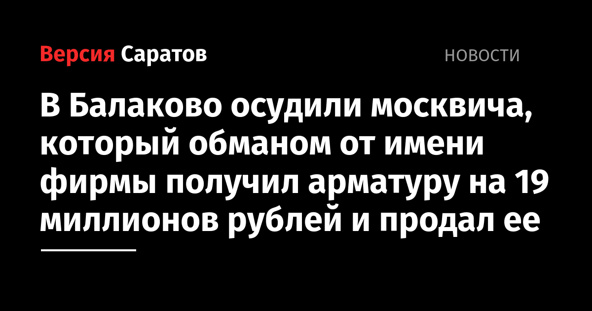 В Балаково осудили москвича, который обманом от имени фирмы получил арматуру на 19 миллионов рублей и продал ее