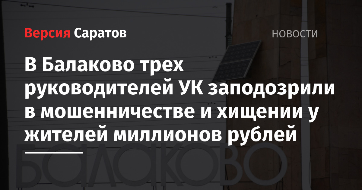 «В ходе проведения оперативных мероприятий полицейскими установлено, что с 2020 по 2025 год руководители трех управляющих компаний при организации финансово-хозяйственной деятельности в сфере управления, действуя группой лиц по предварительному сговору, путем завышения стоимости оплаты работ по капитальному ремонту инженерных сетей и аренде нежилых помещений, расположенных на территории города Балаково Саратовской области, совершили мошеннические действия путем хищения денежных средств, полученных от собственников многоквартирных домов», — привели подробности в пресс-службе ГУ МВД.