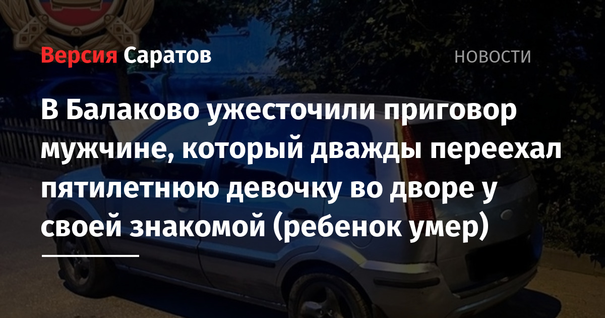 В Балаково ужесточили приговор мужчине, который дважды переехал пятилетнюю девочку во дворе у своей знакомой (ребенок умер)