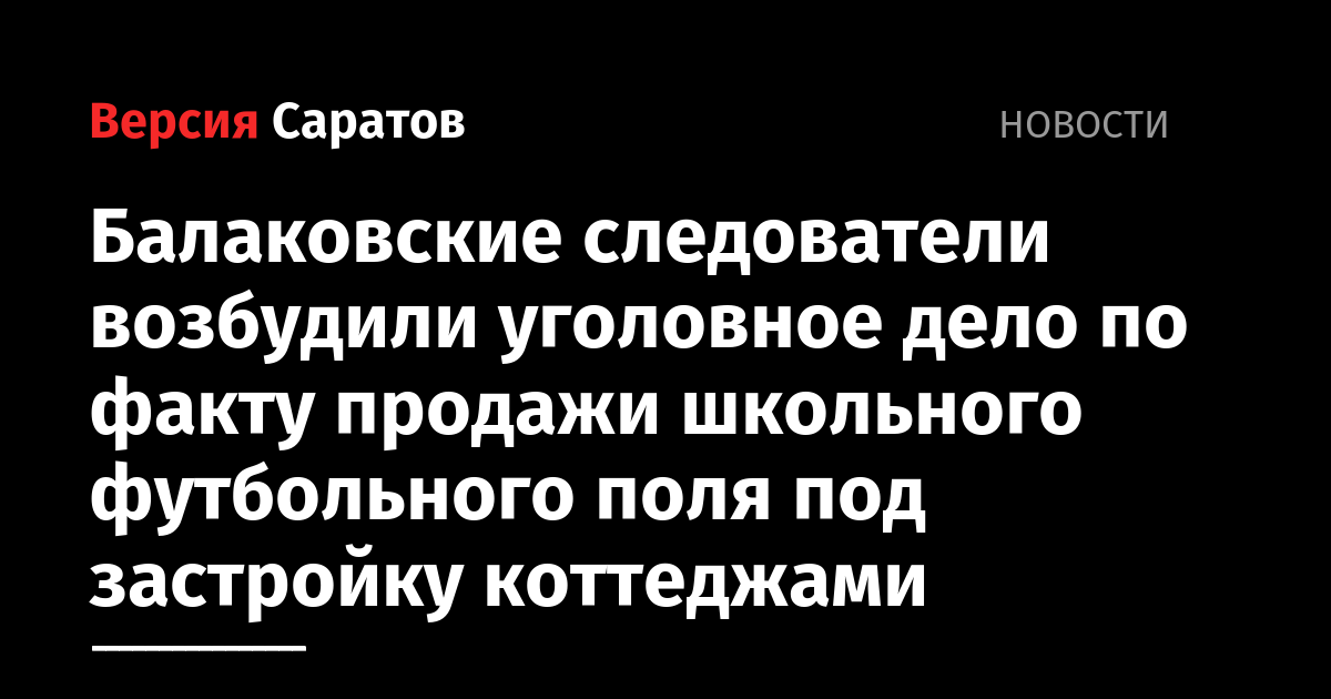 В Балаково возбуждено уголовное дело по факту продажи школьного футбольного поля школы № 10 под застройку коттеджами. Как сообщает пресс-служба областной прокуратуры, дело возбуждено по статье "Превышение должностных полномочий".