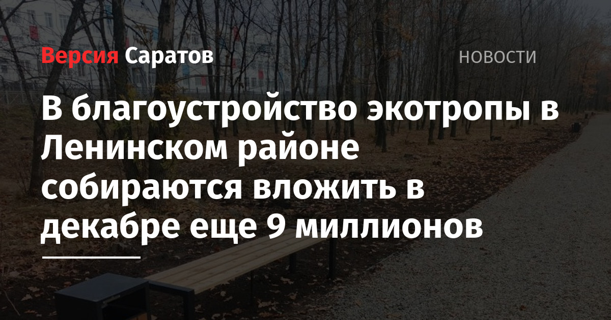 В благоустройство экотропы «Новая Кумысная поляна» в Ленинском районе Саратова собираются вложить в этом году еще 9,28 миллиона рублей. Причем все работы нужно сделать срочно до 24 декабря 2025 года.