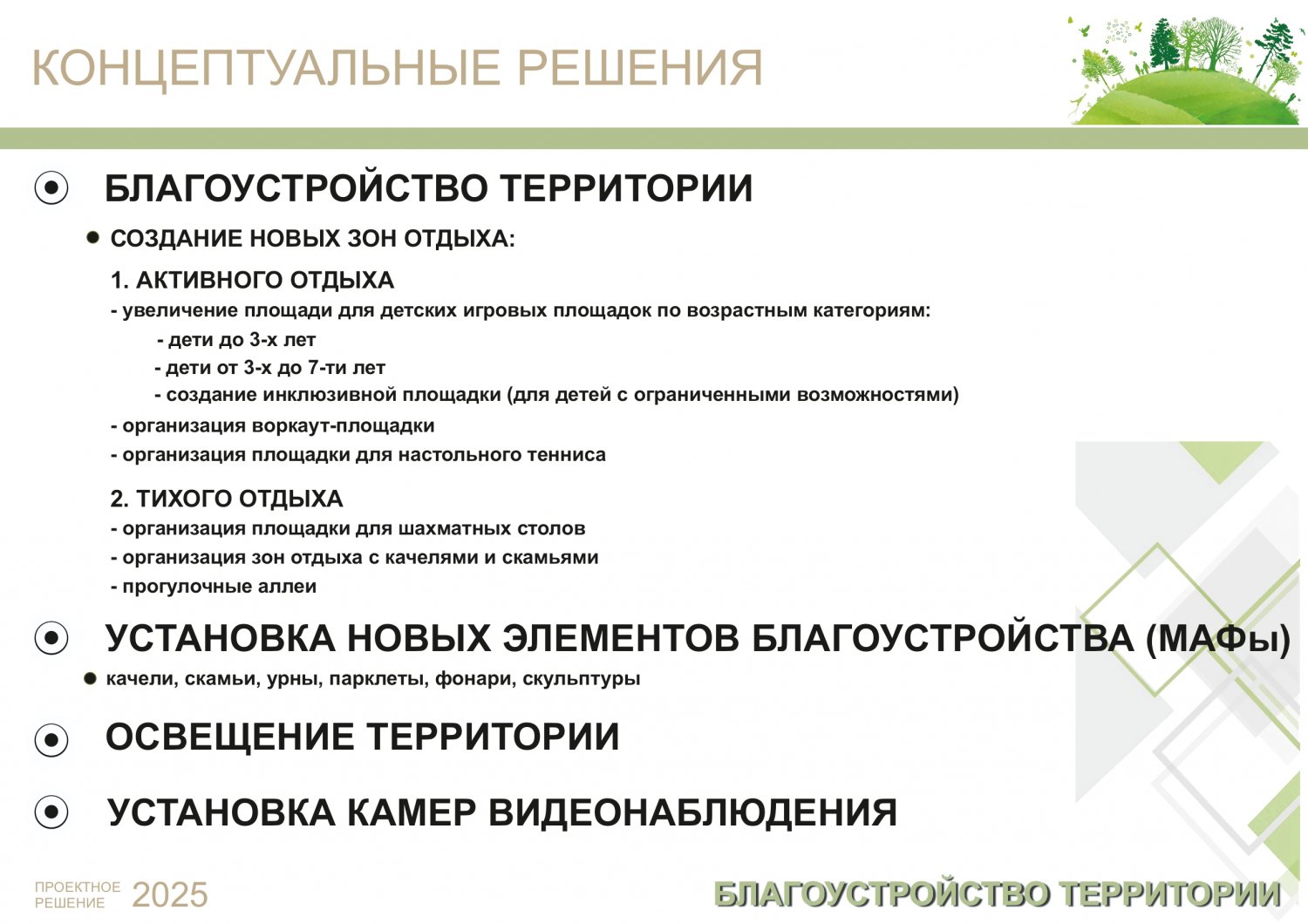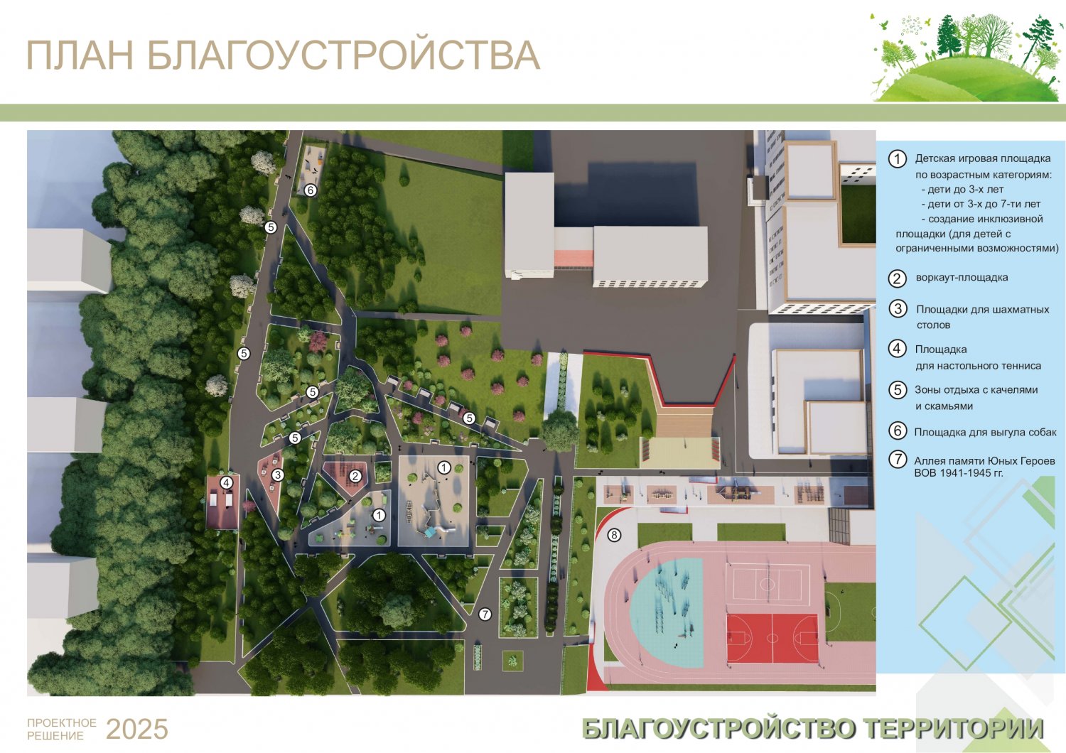 В сквере перед дворцом пионеров планируется разбить газон на площади 8000 кв. м, отремонтировать асфальтовые дорожки, установить столы для игры в шахматы, качели, теннисные столы. В сквере появятся новые детские игровые площадки, малые архитектурные формы и т. д. Чиновники приложили картинки с изображениями того, как сквер может выглядеть после благоустройства.