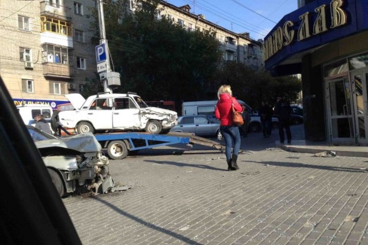 Сегодня утром в центре Саратова на перекрестке улиц Чапаева и Рабочей столкнулись "копейка" и "десятка". От удара "копейка" вылетела на тротуар и врезалась в супермаркет "Милослав". По предварительным данным, в результате происшествия никто не пострадал. На месте ДТП работают сотрудники ГИБДД.