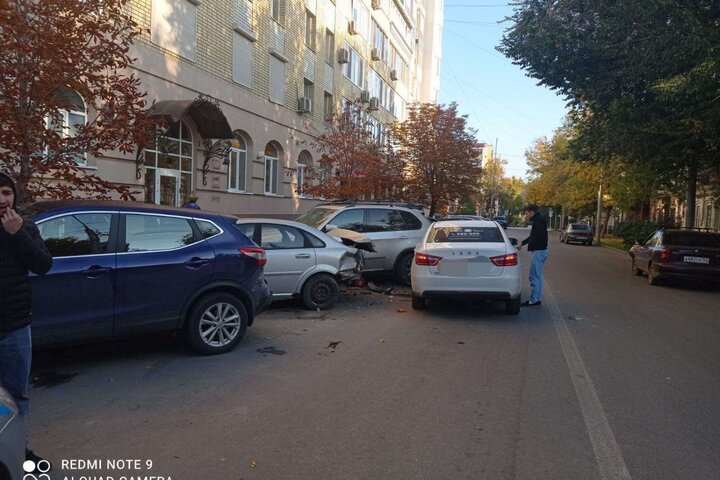 В Саратове массовое ДТП произошло сегодня на улице Некрасова напротив дома № 33/35. По информации городской ГИБДД, водитель автомобиля «Лада Веста» протаранил сразу четыре припаркованные иномарки: Nissan, Chevrolet, BMW и Mitsubishi.
