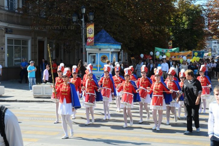 Перед началом церемонии закрытия кинофестиваля по проспекту Кирова промаршировали барабанщицы и школьники из разных районов области.