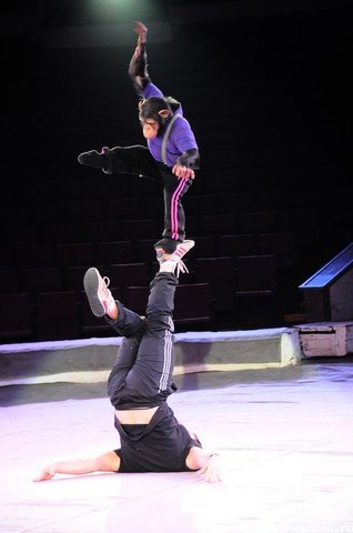 В интервью журналистам Дан Запашный рассказал о своем номере с обезьяной Мальтой. "Я бы не сказал, что я дрессирую, я не использую ни палочки, ни ошейники. У нас семейные отношения. Чтоб она что-то выполняла, нужно стать для нее близким существом, правильно общаться и понимать, предугадывать на несколько шагов вперед", - сказал он. Подопечной артиста шесть лет, весит около 50 кг, впервые на манеж она вышла в саратовском цирке два года назад. Также Запашный рассказал, что обезьяна узнает голоса и не подпускает к хозяину девушек с ярко выраженными женскими формами. "Ей приходится уделять много внимания", - отметил дрессировщик.