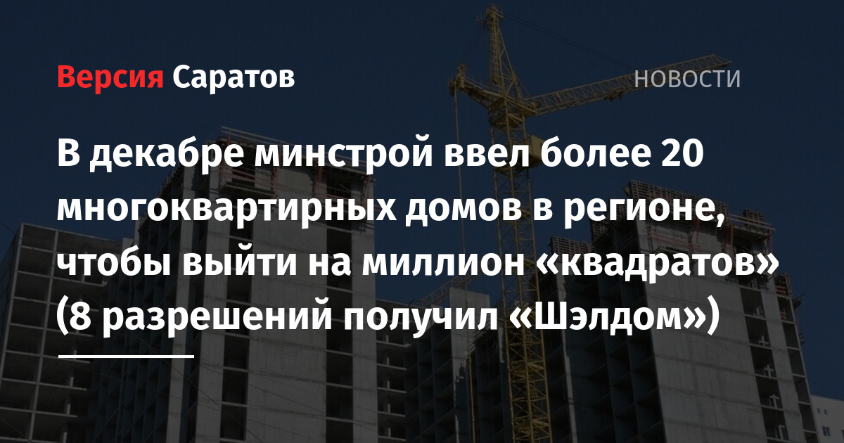 - В Саратовской области за декабрь ввели 325 тысяч «квадратов» жилья, но не дотянули до планки 1,25 миллиона
