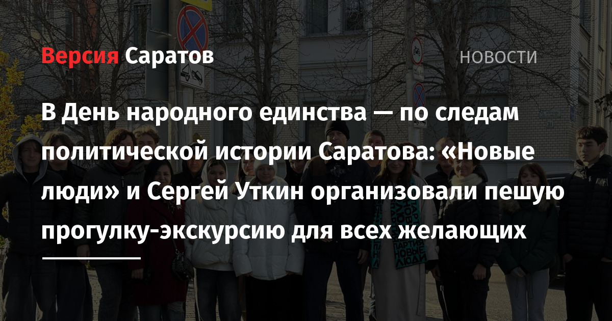 В честь Дня народного единства партия «Новые люди» совместно с известным историком и краеведом Сергеем Уткиным провели уникальную пешую экскурсию для всех желающих. Участники не просто прогулялись по историческим улицам Саратова — они буквально шаг за шагом погружались в ключевые события и переломные моменты политической жизни города.