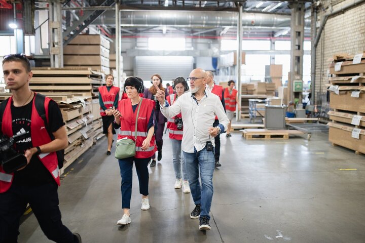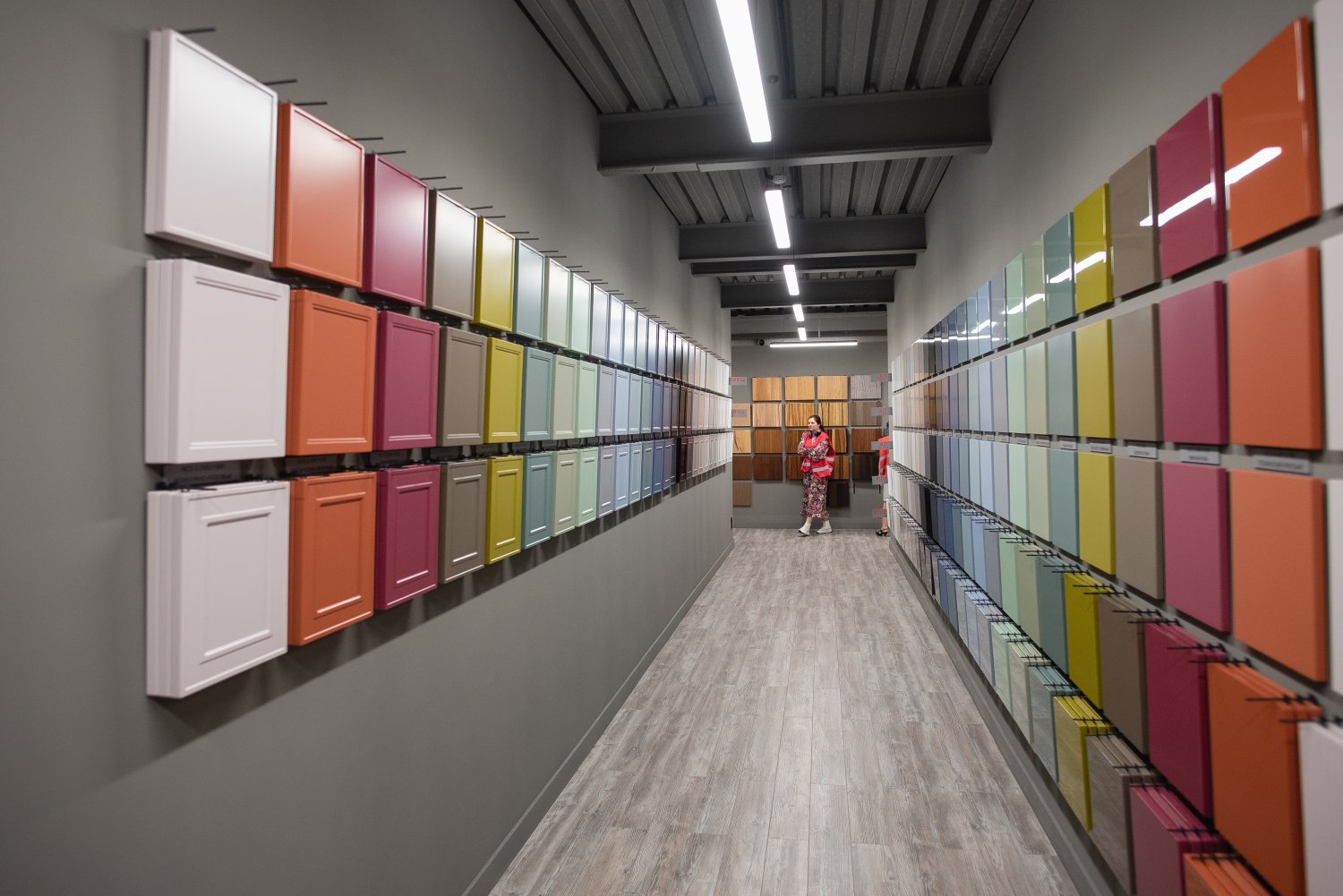 После посещения производства гостей провели в шоурум, в котором недавно появилась целая квартира, полностью оборудованная мебелью «Мария». Здесь клиент может посмотреть, как конкретная кухня, шкаф, прачечная, гардеробная или даже мягкая мебель, встраивается в дизайн помещения. Фабрика «Мария» производит не только кухни, покупатели имеют возможность заказать множество позиций различной мебели себе в квартиру. Также на фабрике есть специальное помещение, где презентованы более 1 000 фасадов разных форм, цветов и покрытий. И это далеко не весь ассортимент фабрики, а только подборка самых актуальных и популярных вариантов. Огромное разнообразие продуктов позволяет дизайнерам создавать для своих клиентов уникальные проекты.
