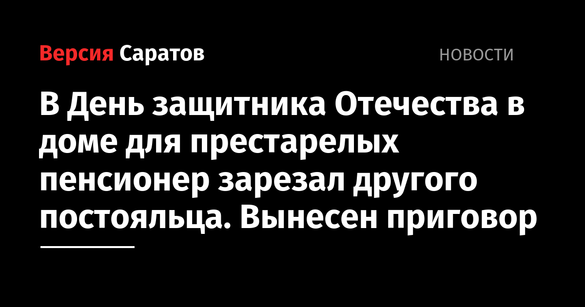В День защитника Отечества в доме для престарелых пенсионер зарезал другого постояльца. Вынесен приговор