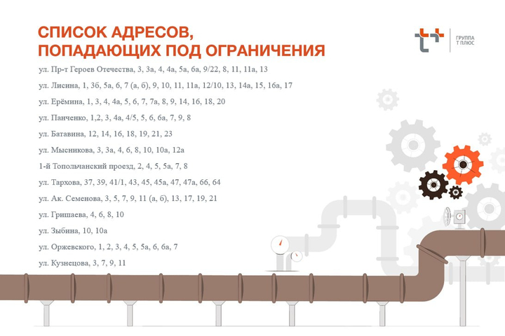 Оказалось, что это приведет еще и к отключению горячей воды (адреса — в приложенном ниже файле). Как объяснили в «Т Плюс», водоснабжение временно прекратят, потому что несколько центральных тепловых пунктов просто останутся без воды.