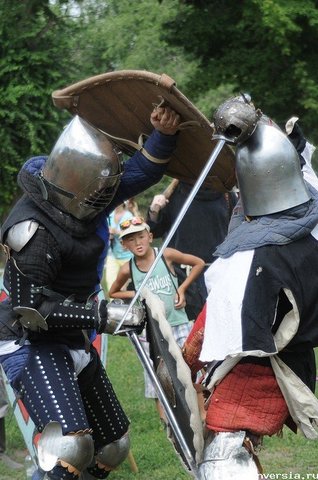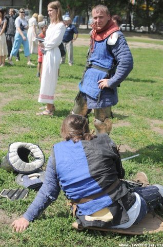 Сегодня в Детском парке в Саратове состоялся первый межрегиональный открытый турнир по историческому фехтованию "Кубок святого равноапостольного князя Владимира". В нем приняли участие спортсмены из исторических клубов Саратова, Балаково, Нижнего Новгорода и Самары. Всего было заявлено около 20 спортсменов. Были организованы и ристалища для детей. На юных бойцов надевали шлемы, а сражались они мягкими битами.