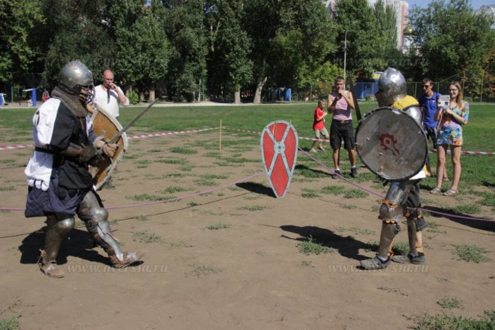 В Детском парке Саратова прошел турнир по историческому фехтованию. Организатором состязания выступили клуб "Стальное копье" и собор князя Владимира. На ристалище, созданном на стадионе, сражались бойцы, одетые в боевое обмундирование. Рядом с этой площадкой другие спортсмены соревновались в стрельбе из лука.