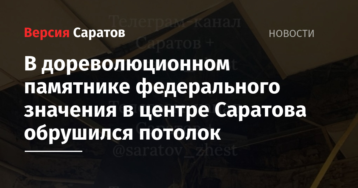 В доме в центре Саратова рухнул потолок. Об этом рассказали местные жители в Telegram-канале «Саратов +».