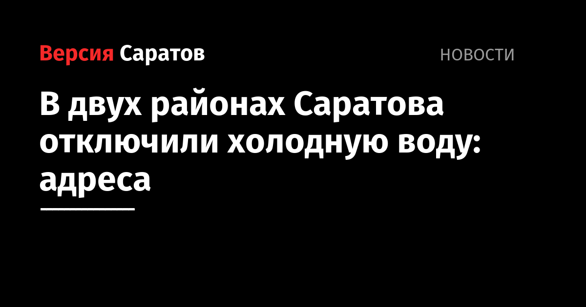 В двух районах Саратова отключили холодную воду: адреса