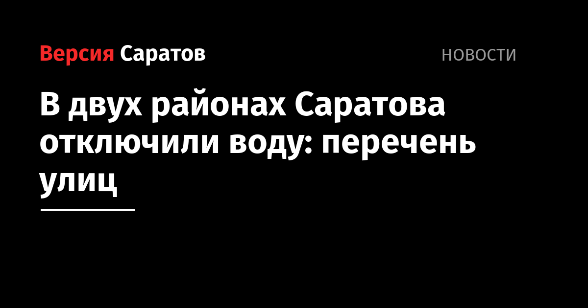 В двух районах Саратова отключили воду: перечень улиц