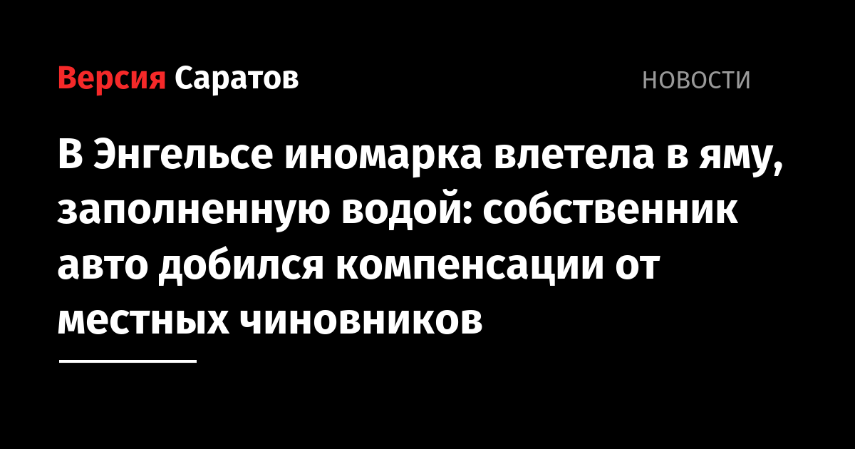 В Энгельсе иномарка влетела в яму, заполненную водой: собственник авто добился компенсации от местных чиновников