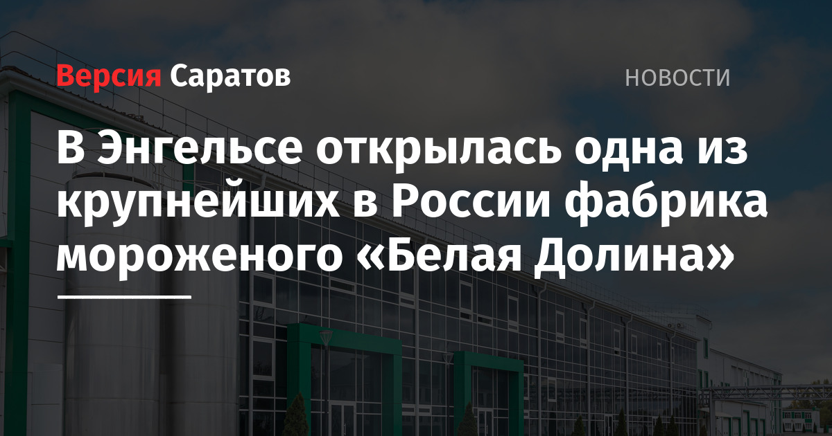 Фабрика мороженого «Белая Долина» начала свою работу в Энгельсе Саратовской области. Это первая за последние 30 лет фабрика мороженого в Приволжском федеральном округе, построенная с нуля. Современная, высокотехнологичная производственная площадка открылась на базе Группы компаний «Белая Долина».