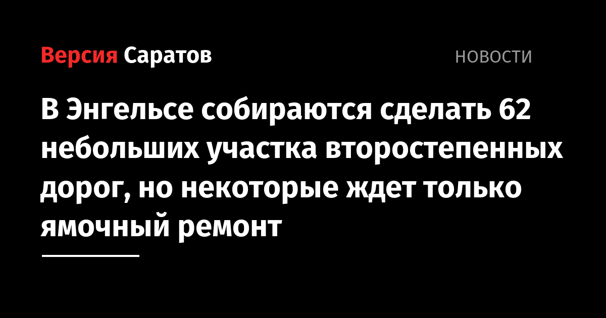 - В Энгельсе за 135 миллионов рублей отремонтируют 18 участков дорог (в том числе в частном секторе): адреса