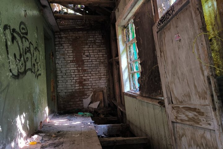 В извещении указано, что дом является аварийным, не эксплуатируется и отключен от коммуникаций. На фото видно, что внутренние помещения находятся в плачевном состоянии.