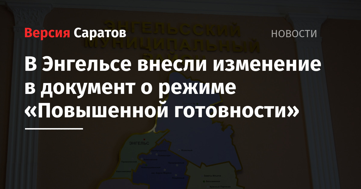 Глава Энгельсского района Максим Леонов внес изменения в постановление «Об отмене режима функционирования режима «Чрезвычайная ситуация» и введении режима функционирования «Повышенная готовность» от 29 июля. Новое постановление было подписано вчера, 20 октября.