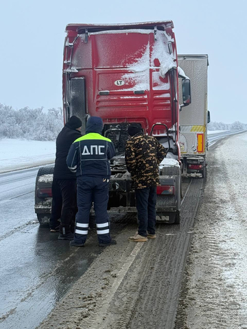 Инспекторы ДПС пришли на помощь водителю грузовика MAN, застрявшего на трассе. Во время несения службы они обратили внимание на грузовик с полуприцепом, стоящий на обочине дороги Тамбов — Пенза — Ершов — Озинки