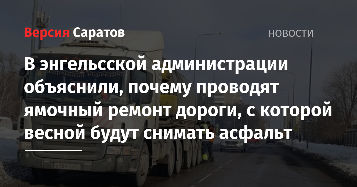 В энгельсской администрации пояснили, почему перед капитальным ремонтом дорожного полотна на улице Пушкина проводится ямочный ремонт. Как объяснил заместитель главы администрации Энгельсского района Антон Закурдаев, работы ведутся за муниципальные средства, «чтобы проезд был обеспечен до большого ремонта весной».