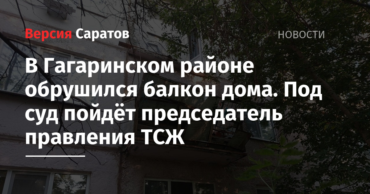 В Гагаринском районе обрушился балкон дома. Под суд пойдёт председатель правления ТСЖ