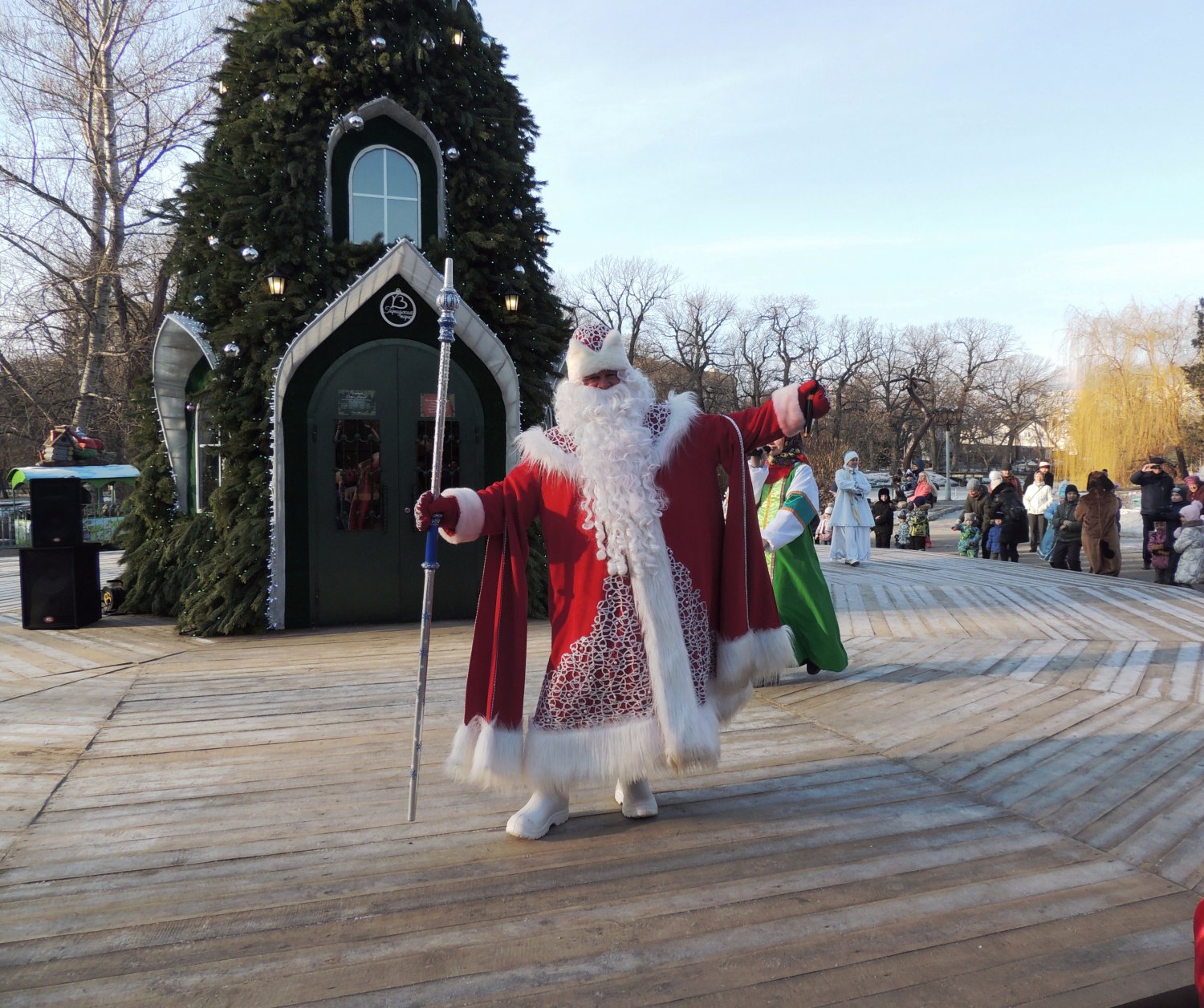 В Городском парке Саратова прошли торжества, приуроченные к празднованию Нового года. Для посетителей были организованы конкурсы и концерт. Все желающие могли продемонстрировать свои спортивные и творческие таланты, а юные саратовцы водили хороводы со сказочными героями, за расказанные стихи Дед Мороз вручал детям сладкие подарки.