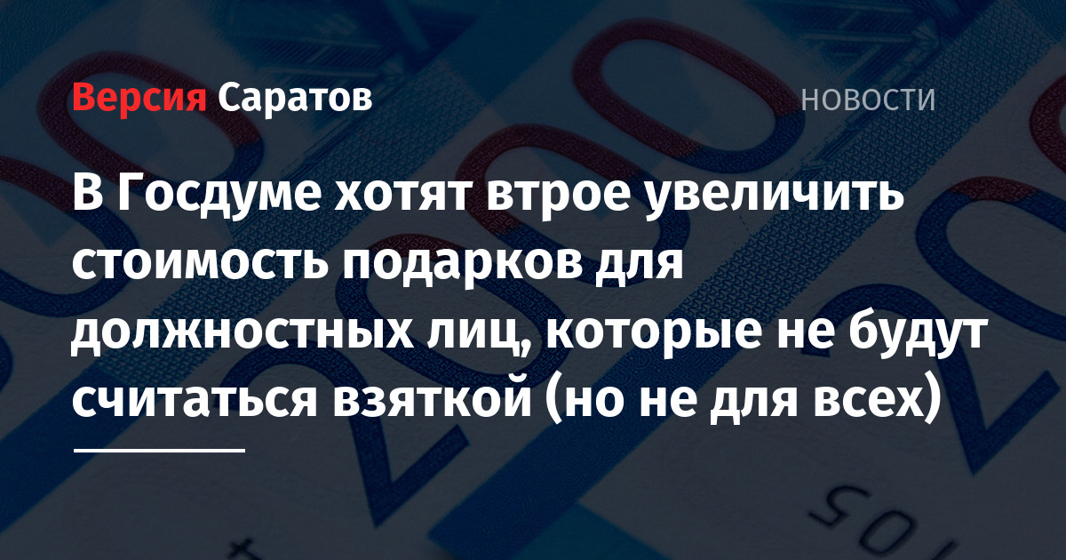 Авторы предлагают поднять стоимость подарков, которые не будут считаться взяткой. Они отмечают, что действующий сейчас норматив — 3 тысячи рублей — установлен еще в 2008 году и ни разу не индексировался. Поэтому его предлагается увеличить до 10 тысяч рублей.