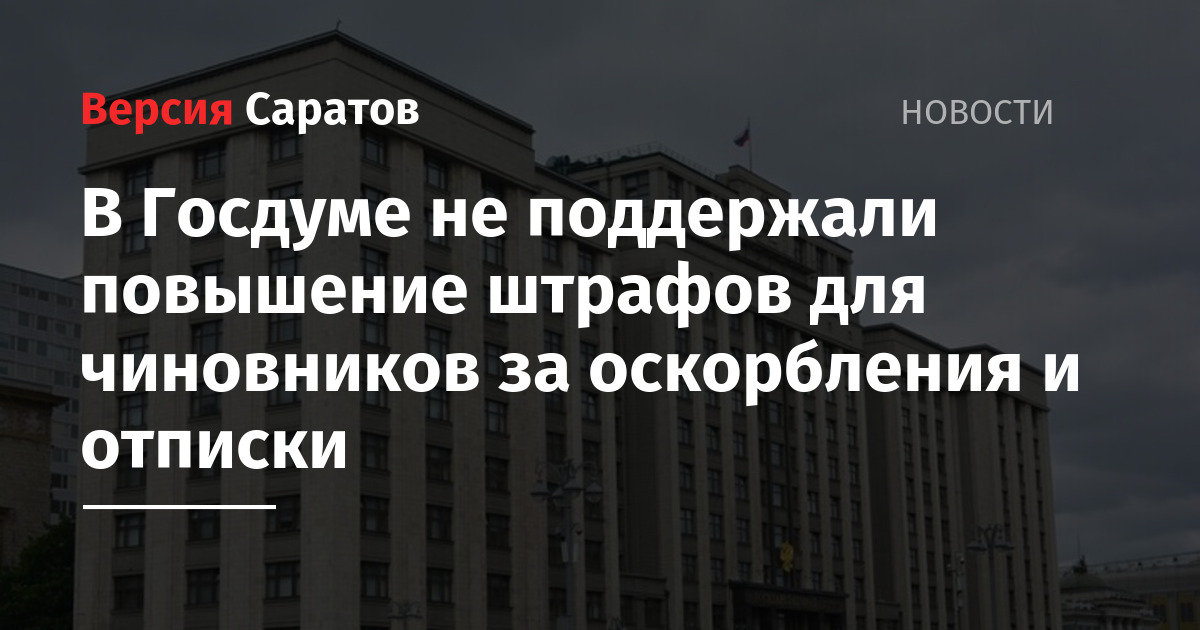 Профильный комитет Госдумы — по госстроительству и законодательству — не одобрил законопроект о повышении штрафов за оскорбления для чиновников. Об этом сообщает РБК.