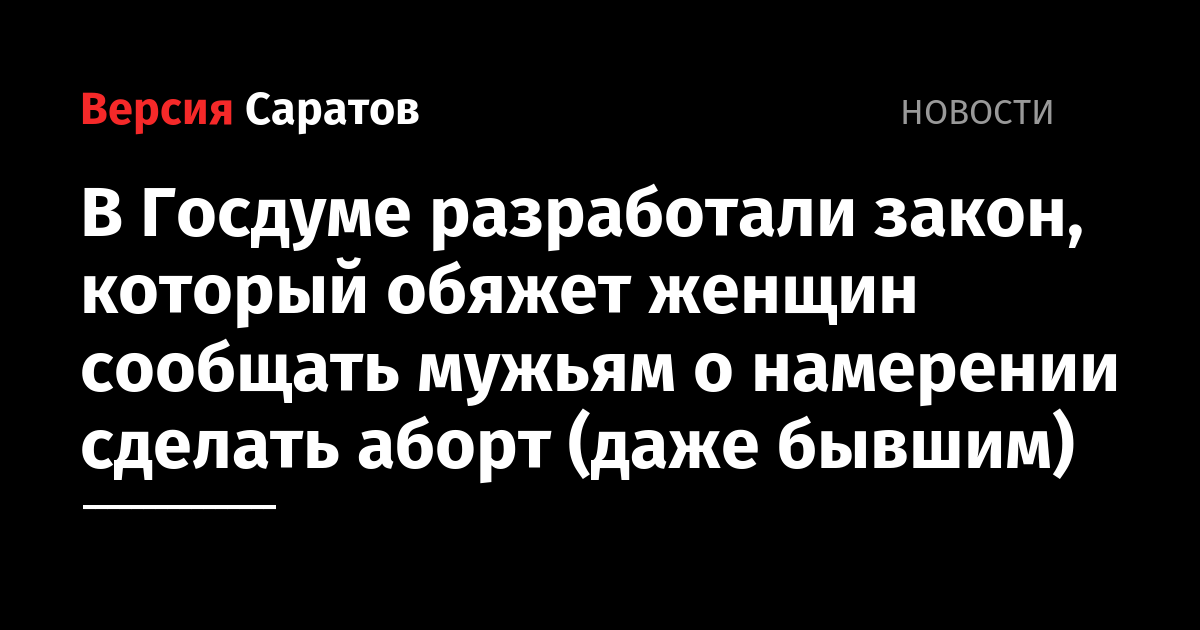 Авторы предлагают законодательно закрепить обязанность женщин информировать супругов (если они есть) о намерении искусственно прервать беременность. Причем в документе указано, что сообщать об этом нужно даже бывшим мужьям, если развод был не более 20 недель назад.