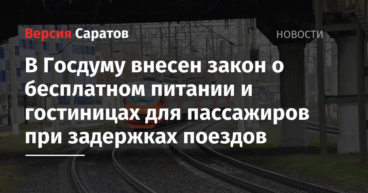 В Госдуму внесен закон о бесплатном питании и гостиницах для пассажиров при задержках поездов