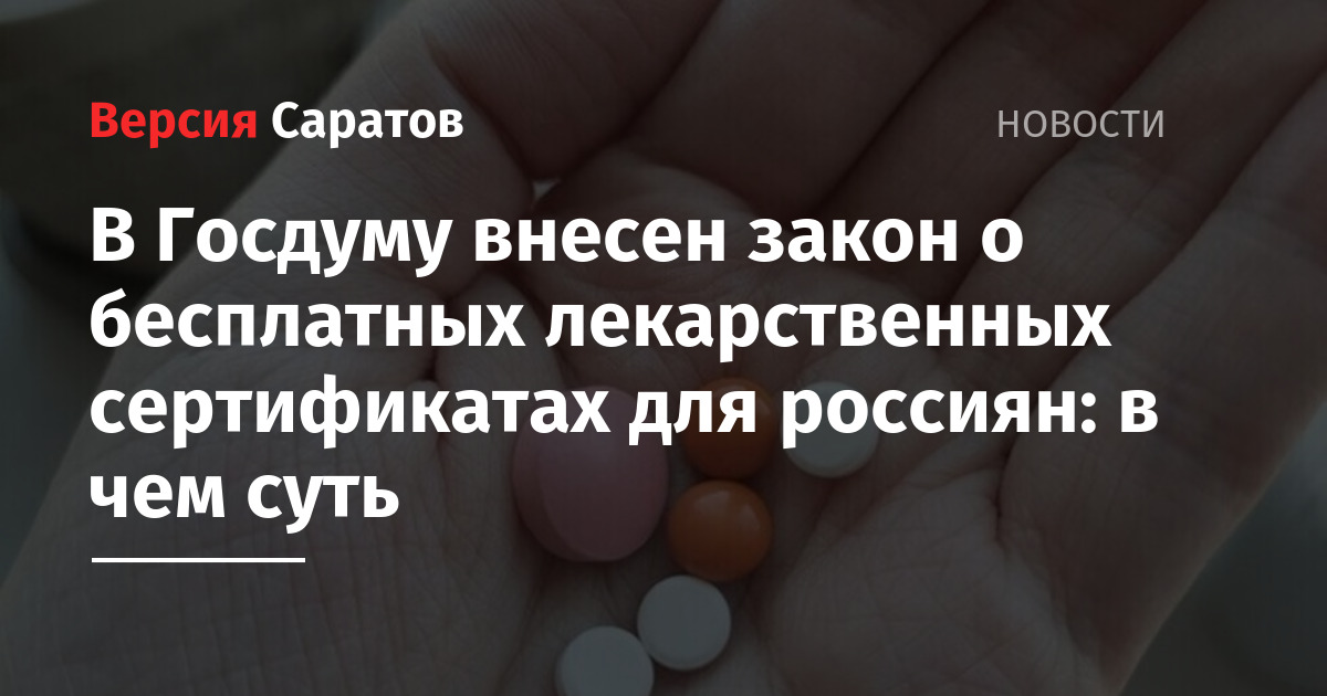 В России может появиться новая мера социальной поддержки граждан — лекарственный сертификат. Законопроект о нововведении внесен сегодня в Госдуму.