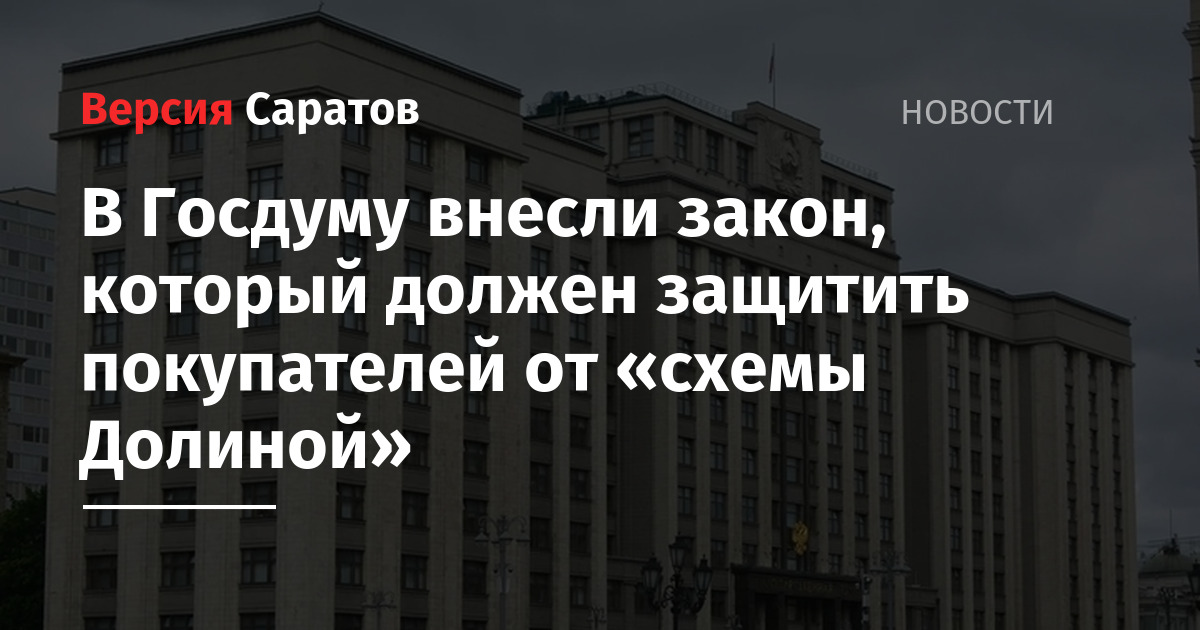 В нижнюю палату парламента поступил законопроект с поправкой в Гражданский кодекс РФ. Документ должен помочь защитить покупателей от так называемой «схемы Долиной». Сегодня он опубликован в системе обеспечения законодательной деятельности Госдумы.