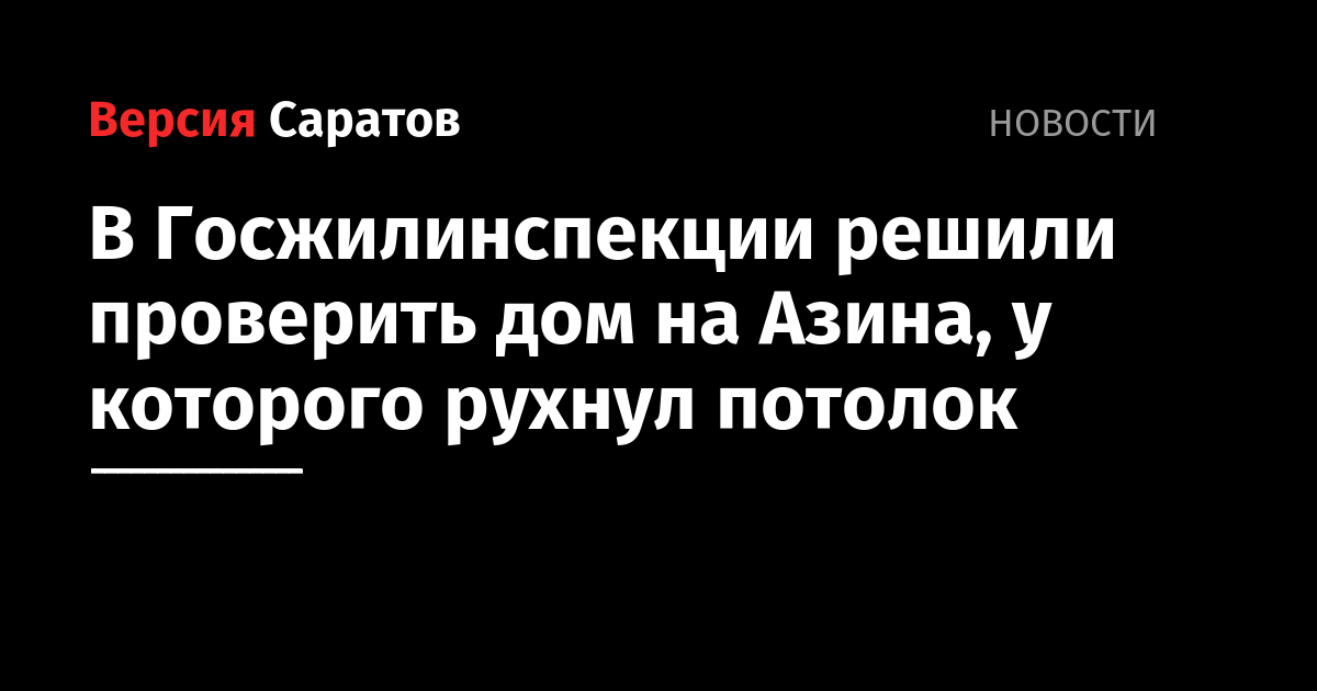 Специалисты Государственной жилищной инспекции осмотрят дом № 55а по улице Азина в Саратове, где вчера обрушился потолок. Об этом корреспонденту ИА "Версия-Саратов" рассказали в пресс-службе проверяющей инстанции. "Жилым домом, согласно реестру лицензий, управляет ООО "Наш Дом", - сообщили в инспекции.
